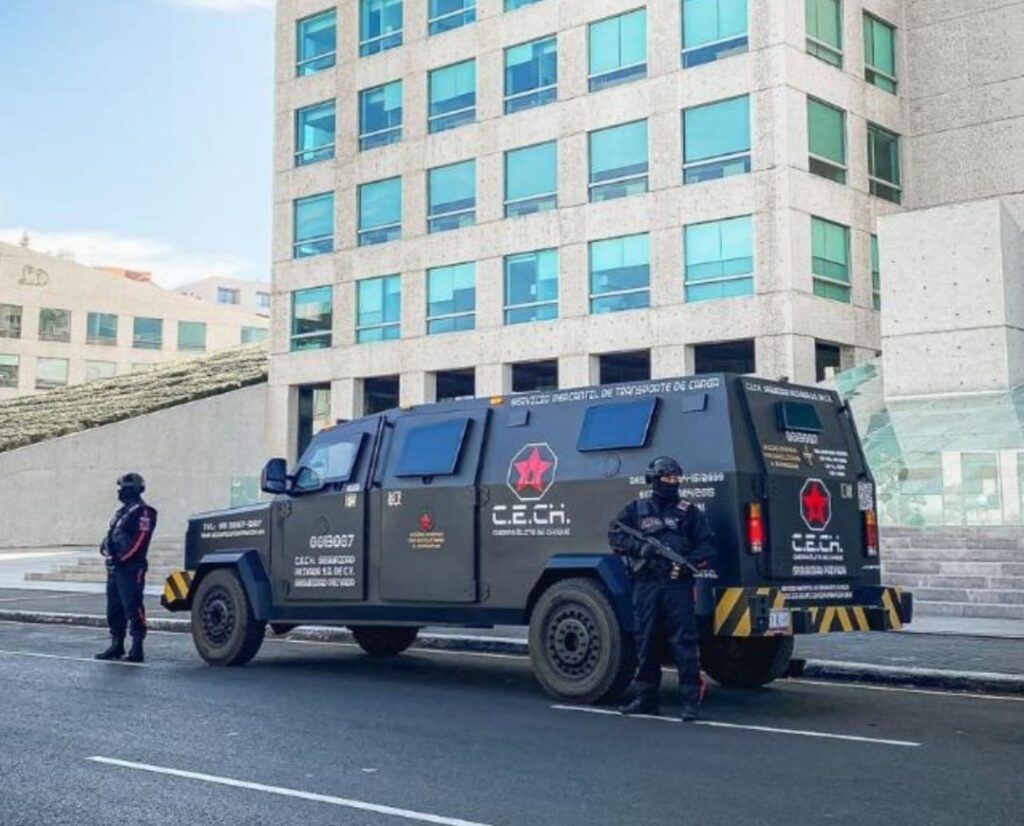 Custodios armados en el traslado de valores, (militares y marinos), operando con unidades blindadas nivel IV y V+ (armas largas), equipadas con dispositivos GPS (GLOBAL POSITIONING SYSTEM), pendientes para reaccionar ante cualquier amenaza, evaluados constantemente y de manera aleatoria, con exámenes psicológicos, toxicológicos, socioeconómicos, entre otros.